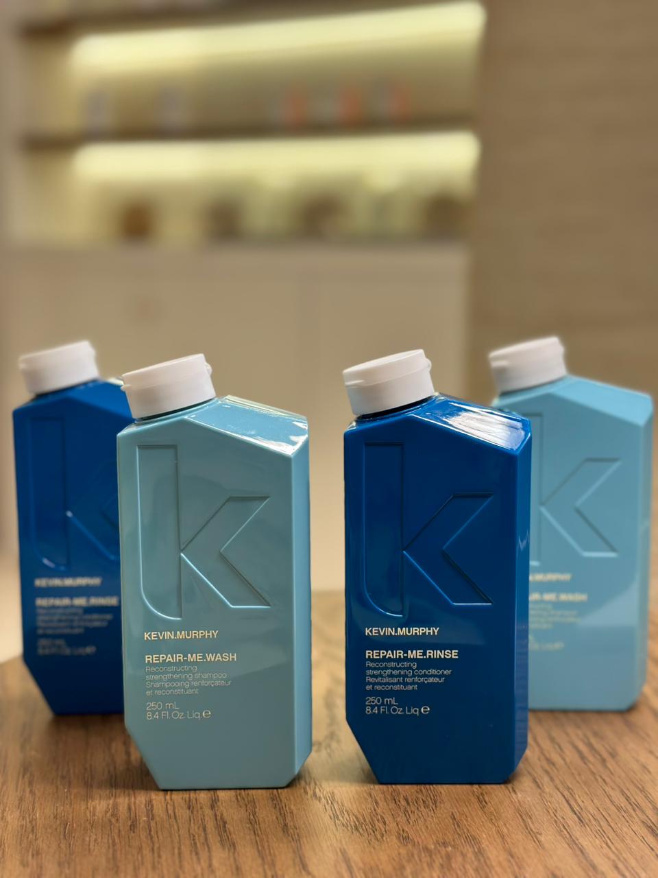 شامبو وبلسم كيفن مورفي ريبير-مي (KEVIN.MURPHY REPAIR-ME) هو مجموعة علاجية مصممة لإصلاح وتجديد الشعر الجاف والتالف والمجهد والمعالج كيميائياً، حيث يعمل الشامبو (Wash) على تنظيف الشعر بلطف وإعادة البروتينات والأحماض الأمينية، بينما يقوم البلسم (Rinse) بتغذية الشعر بعمق وترطيبه وتقويته من الداخل، مما يمنح الشعر مظهرًا صحيًا وحيوية ولمعانًا ويقلل من التجعد، معززًا بمكونات طبيعية مثل إنزيمات البابايا والأناناس.